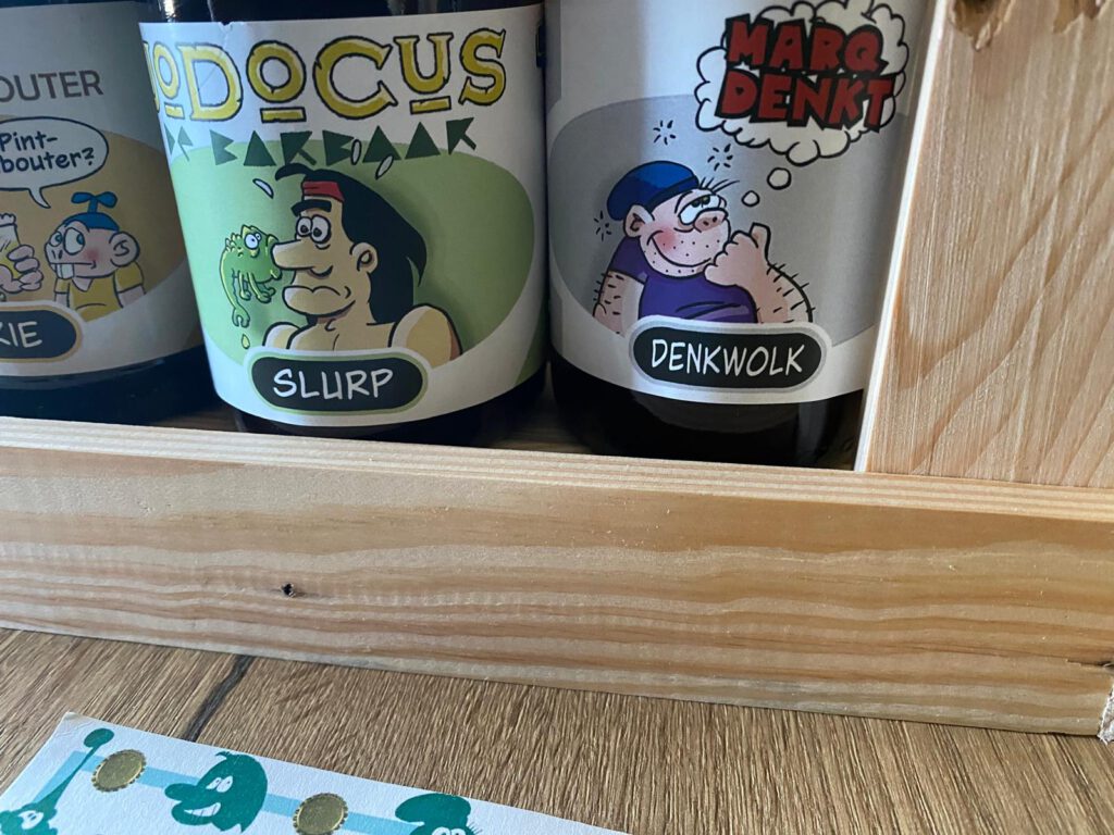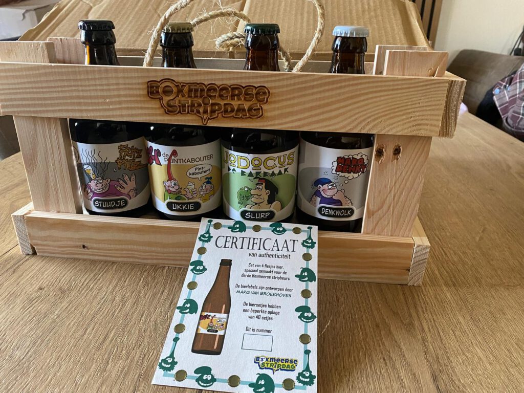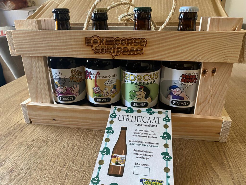 40 setjes speciaalbier met etiketten, getekend door Marq van Broekhoven. Alleen tijdens de Stripdag te verkrijgen incl genummerd certificaat. 25 euro per set.
